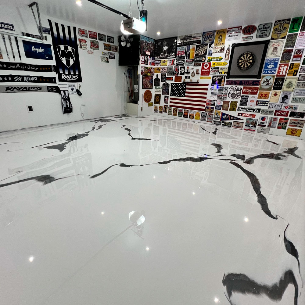 Resistant, easy-to-clean epoxy floors available in metallic, solid, or flake finishes—plus premium polyaspartic coatings designed for Houston garages.
